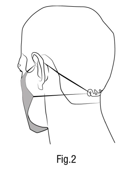 Put the mask on your face to cover your nose and chin (Fig. 1). Leave a space about the size of a finger between the mask and the underside of the chin for ventilation. The mask should be placed flat, halfway up on your nose (Fig. 4).