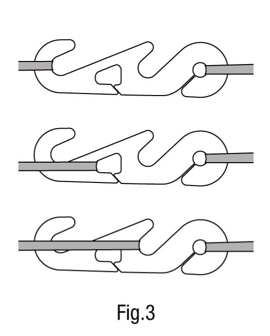 Connect the elastic bands behind your head with the hook provided (Fig. 2). Find the best fit with one of the three attachment points on the hook (Fig. 3).
